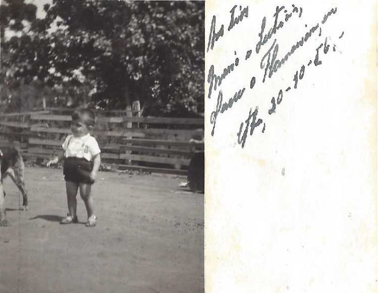 Nessa fotografia enviada pelo primo Fernando Luiz podemos vemos o pequeno e animado Flamarion, ainda criança, no interior da chácara dos avós Orlando e Arlinda em Tranqueira, a 20 km de Curitiba, no estado do Paraná.