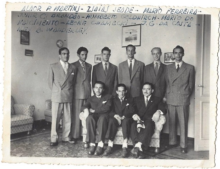 Em pé: Alaor P. Martins, Isaías Seade, Mario Ferreira, Junir C. Brandão, Humberto Goldhirch e Mario do Nascimento.