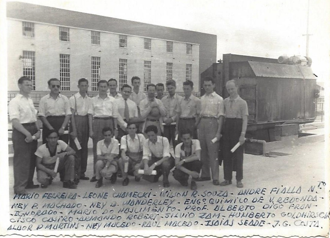 Quando imaginávamos ter acabado as fotos da Série “Mário e seus amigos” o primo Fernando Luiz mais uma vez nos surpreende com o envio de mais uma fotografia mostrando o tio Mario com sua galera na época da faculdade de Engenharia Civil da UFPR, turma de 1946.
